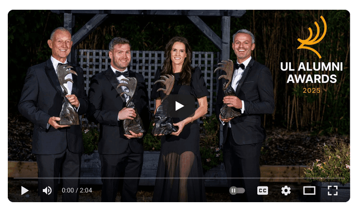 The 18th annual UL Alumni Awards Gala Dinner took place on 26 September at Limerick’s Castletroy Park Hotel, celebrating the achievements of the 2025 UL Alumni Award recipients: trailblazing jockey Rachael Blackmore, three-time Olympian Thomas Barr, humanitarian Joseph Kinahan and activist Tomás Heneghan.